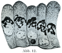 [図13]プロテウスProteus(有尾両棲類)の精細胞における偽染色体Pseudochromosomen (Heidenhain,1900)