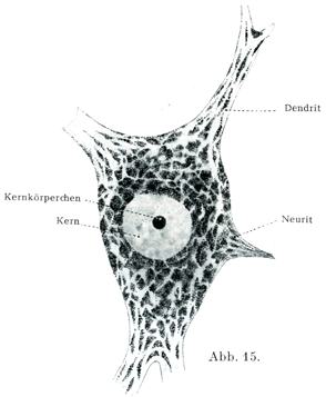 Saguchi (Zytolog. Studien 1930,1934)およびBerg (Z. mikr.-anat. Forsch., 28. Bd.,1932)によれば核小体から物質が細胞体に移行するという.