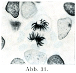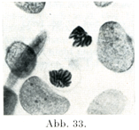 [図36]Lygaeus turcicusの精祖細胞Spermiogonieにおける1組の核係蹄