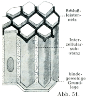 多数の上皮細胞がたがいに結合して1つの上皮をなすこと,すなわち一と続きで隙間のない1層をなすことは接合質Kittsubstanz(細胞間物質Interzellularsubstanz),あるいは細胞と細胞とのあいだを通ずる細胞間橋Verbindungsbrucken (Interzellularbrucken),もしくはこの両者が同時に存在することによって実現している.
