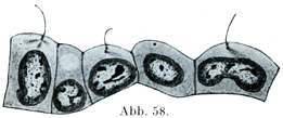 上皮細胞の内部の分化としていま一つの別の種類は脂肪化上皮細胞Fett-oder Pio-Epithelzellenであって,その例は脂腺や乳腺の上皮にみられる.しかしこれらはわれわれが種々の上皮性の腺でみるところの細胞内部の変化についての万掌鏡ともいうべきもののほんのわずかな一部にすぎないのであって,それらの上皮性の腺については後に諸器官の項で述べることとする.