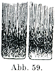 [図59]2個の色素上皮細胞 ヒトの網膜,細胞の側面からみる.細胞の下部は色素を欠き,上方に向かって長い絨毛状の突起ができている.核は示されていない.(M. Schultzeによる.)