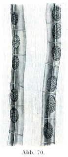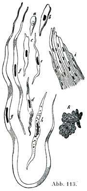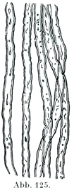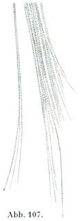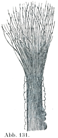 [図131]ダツ(硬骨魚類)の鼻窩より得た神経原線維束.ほぐれてごく細かい静脈粒状の原線維となっている.(M. Schultze)