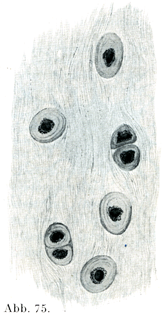 [図125]新鮮な有髄神経線維 重複した輪郭をもち,またでこぼこした境界を示している.(Quainより.)