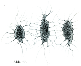 b)星状膠細胞Astrocyten (蜘蛛細胞Spinnezellenともよばれる),
