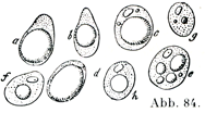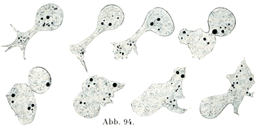 一定の細胞でみると,絨毛の運動はいろいろと違ったぐあいにおこなわれるが,毛のなびく方向はいつも変わらないのである.小さい細胞で,しかも弱い拡大でみたのでは,絨毛細胞の特性はなかなか分からない.多くの動物のものを比較してしらべると,はじめて絨毛細胞の複雑な構造がいっそう明瞭にある.絨毛細胞は動物界の全体を通じて大きい役目をしていて,時としてはこれが唯一の運動器具をなしているのである(図45).