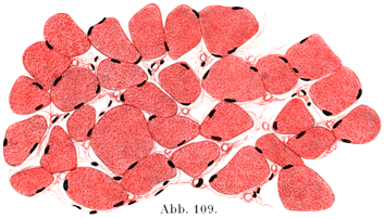 若い動物では神経細胞から全く切り離され末梢株の中で再生がおこるのである(自発的再生autogene Regeneration, PhilippeauxとVulpian, Bethe).そのときは第4日頃からシュワン鞘の核と原形質がさかんな増殖をはじめる.20日間たつと変性した髄質の残りがほとんど全くなくなる.シュワン鞘の核と原形質が帯のような線維すなわちBandfasern(帯線維の意)をつくる.その中で外方の被う部分と中軸をなす部分が分かれてきて,後者はすでに原線維性のすじのようなものが存在する.その後に髄質の被いができる.それも核の近くでまずあらわれるのである.このさいなおわかることは,この再生現象は末梢株の中心端のところで末梢の部分よりもいっそう速やかに進行すると,中心部に近いほどそれが大きいということである.しかし自発的再生によってできた神経はのちにふたたび変性してしまう.