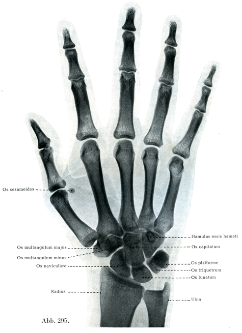 [図295]手の骨格 生体(成人)の手のX線像.背掌照射(2/3)