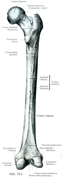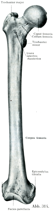 1. 大腿骨Os femoris = Femur, Schenkelbein(図305, 313~315, 367)