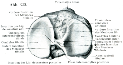 [図320]右の脛骨の上面(3/4) 半月と膝交叉靱帯の付着面