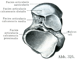 [図323, 324]右の距骨(3/4) 図323は近位面, 図324は遠位面