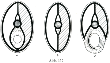 尾部では(図357b)体腔と内臓は欠如し,中間および腸壁周囲葉は相合して,なお血管だけをとり囲んでいる.