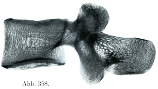 [図358]第3腰椎(左半)さらした骨で海綿質の構築をレントゲンによって示す(×1)