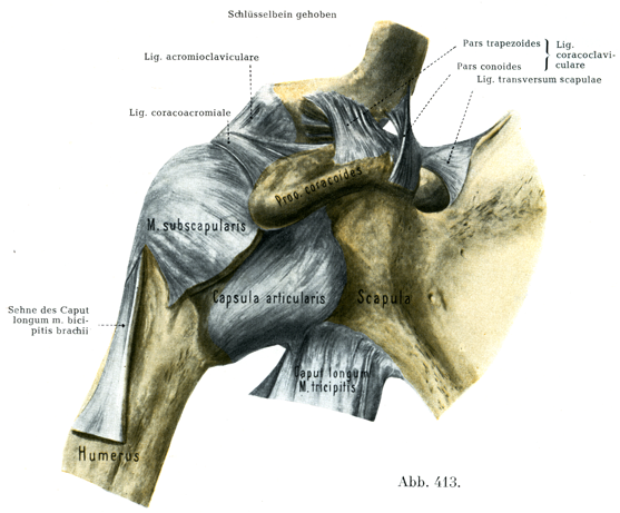 [図413] 肩関節(右)と肩甲骨の諸靱帯(4/5) 前面.