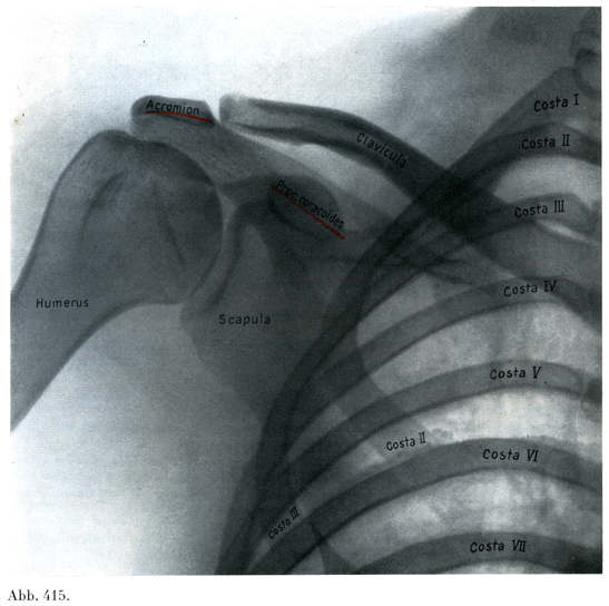 [図415] 肩関節と肩鎖関節 27才の処女の右肩のレントゲン像,腹背照射.