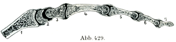 基節骨と中節骨の遠位端の関節面は,上腕骨滑車に似た滑車をなしている.一方中節骨と末節骨の底にあってこれに対応する面は浅い関節窩をなし,そこに1本の導隆線がある(図429, 431)