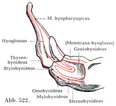 変異:Theileによればオトガイ舌骨筋のすぐ外側に1つの小筋束がみられるのが普通であって,これは舌骨の大角の基部に達している.
