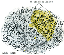 [図638] クローム親性細胞 新生児の骨盤部交感神経節の横断.(A. Kohn, Handbuch……Physiologie 1930)