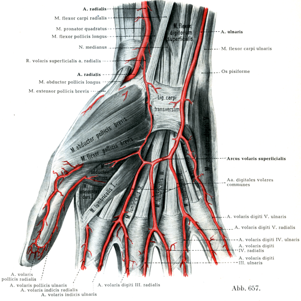 [図657] 手掌(右)の動脈(II) 浅掌動脈弓Arcus volaris superficialis (5/6)