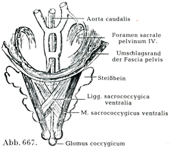 [図667] 尾骨動脈糸球Glomus coccygicum 尾椎の前面(Luschkaによる)