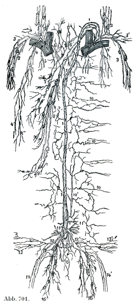 [図701] 主なリンパ管の走行についての模型的概観(Quainによる) 1/4