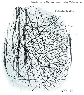 [図42] 歯髄内の神経線維(Dependorfによる).