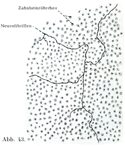 [図43] ゾウゲ質内の神経原線維の網(Dependorfによる).