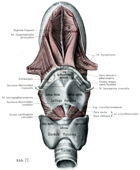[図77]舌と咽頭との筋肉(II) 前下方よりみる(5/6)