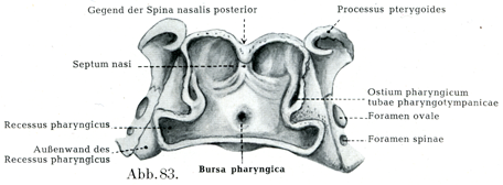 [図83]咽頭円蓋Fornix pharyngisと咽頭嚢Bursa pharyngica.下方よりみる.