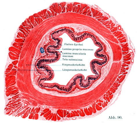 [図90]ヒトの食道の中部の横断 *粘膜下組織内の粘液腺