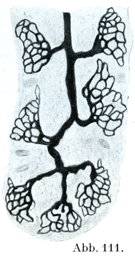 [図111]家兎の胃底腺の腺底における傍細胞の分泌細管 24時間食物をあたえないでみたもの.(C. Golgi)