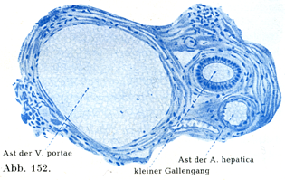 [図152]小葉間結合組織 肝被膜のつづきをなし,門脈・肝動脈・総肝管の枝をもっている.