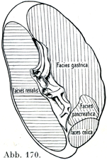 [図170]脾臓の内臓面 他の器官との接蝕面をしめす.(1/3)