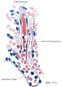 [図174]動脈性毛細管が毛細管性の静脈に移行するところ(Weidenreich)