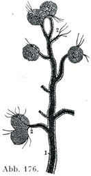 [図176]ヒツジの脾臓内の動脈の小幹.マルピギー小体をもっている×15