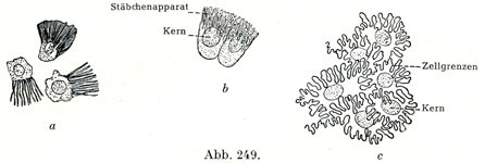 [図249]a ラットの腎臓細胞を遊離させたものとその小棒構造(Zimmermannによる) ×400