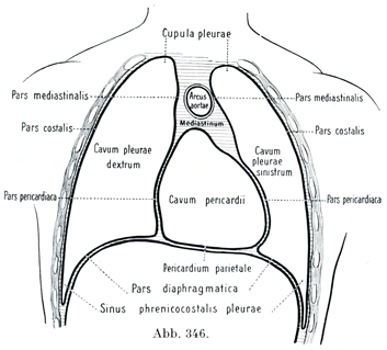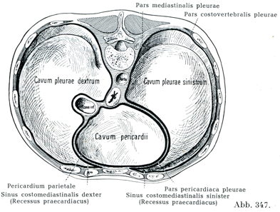 [図346]胸膜洞 胸腔の3つの漿膜嚢の前頭断