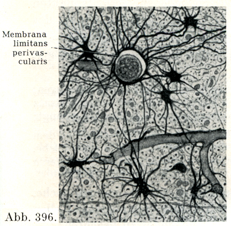 [図396]血管周囲境界膜 ヒトの正常な大脳皮質から(Bauer, K., Z. Zellforsch., 30. Bd.,1940の図の一部);