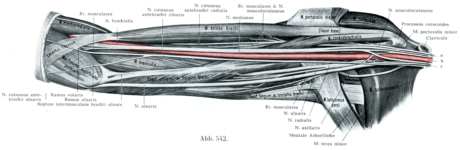 [図542]右上腕の神経 内側面よりみた図.(1/2)