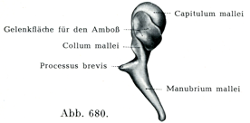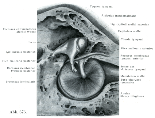 [図676]左の鼓膜の内面とツチ骨およびキヌタ骨(×4)