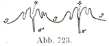 [図723]各乳頭列にいくつもの乳頭のある皮膚の断面(断面の方向は前図と同じ)