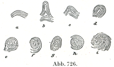 [図726]指さきの皮膚小稜の諸型(Purkinje)