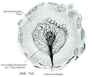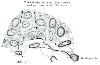 [図736]メルケル細胞とその触覚盤および終末周囲細網