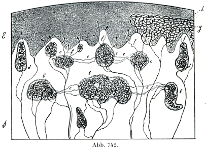 [図742] 外陰部の皮膚にある知覚神経終末の模型図(A. S. Dogiel).