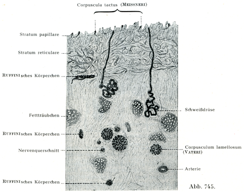 [図739]手の指の皮膚(ヒト)にある触覚小体(E. FischerおよびW. Flemming)