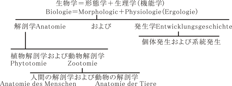 生命を有するもの全体についての科学すなわち生物学Biologieに対する解剖学の関係は次の表によって解明と外観があたえられる.