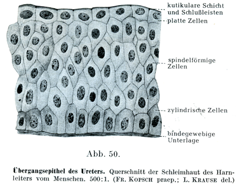 [図50]尿管の移行上皮 ヒトの尿管粘膜の横断図.×500.