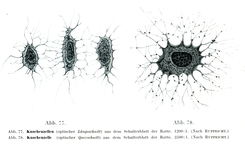 [図78]骨細胞1個(横に置いて内部までみる.)ネズミRatteの肩甲骨より.×2500. (Ruppericht)