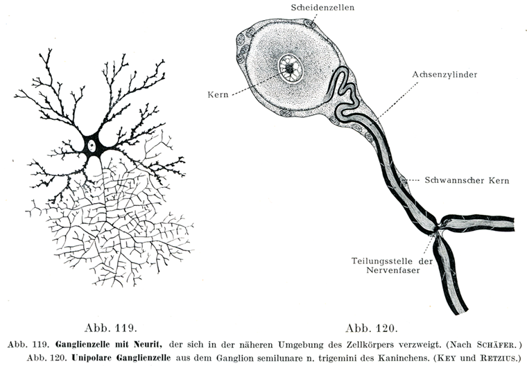 [図120]単極神経細胞 家兎の三叉神経の半月神経節より.(KeyとRetzius. )