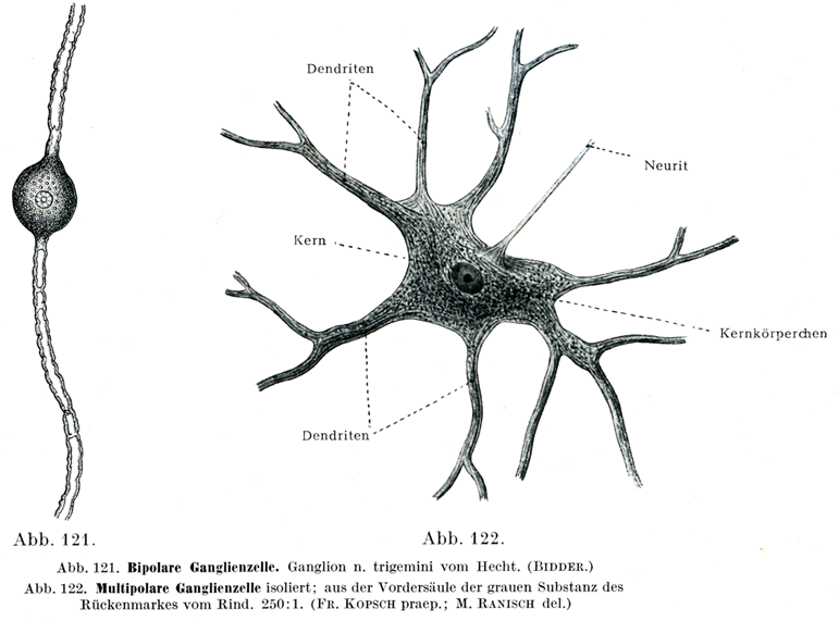 [図121]双極神経細胞 ダツ(硬骨魚類)の三叉神経節より.(Bidder. )